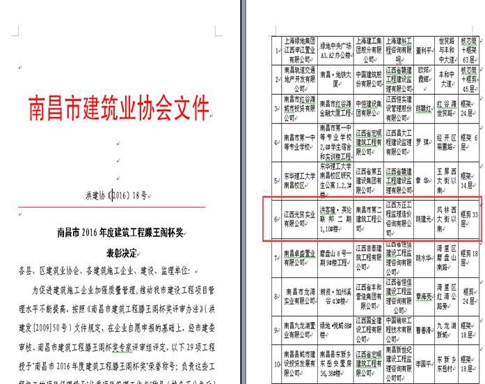 由南昌市第二建筑工程公司承建的江西旺旺新建廠房1#車(chē)間工程獲“2015年度江西省優(yōu)良工程獎(jiǎng)”,宜春市明月大橋(原宜春大橋)改建及引道工程榮獲“2015年度江西省杜鵑花獎(jiǎng)”[摘自江西省住房和城鄉(xiāng)建設(shè)廳文件贛建質(zhì)字[2016]5號(hào)]。