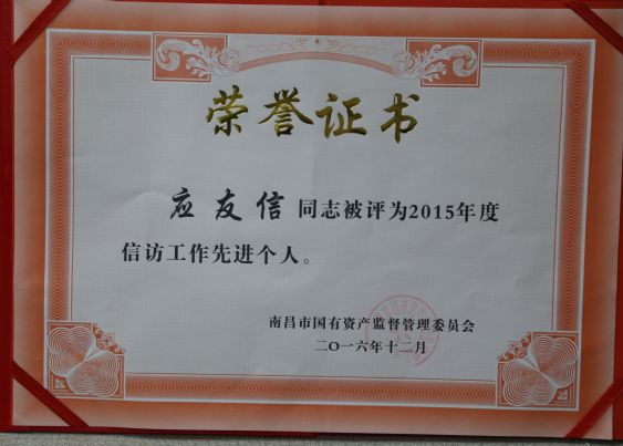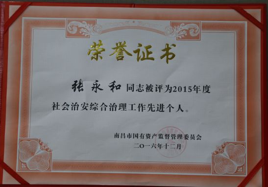 2016年12月,市二建公司榮獲市國資委頒發(fā)的兩項(xiàng)榮譽(yù)——綜治工作先進(jìn)單位、信訪工作先進(jìn)單位。分管該項(xiàng)工作的領(lǐng)導(dǎo)、成員等三人同時(shí)被授予先進(jìn)個(gè)人,成績的取得原自于市國資委的正確領(lǐng)導(dǎo),更離不開單位和工作人員的辛勤努力。