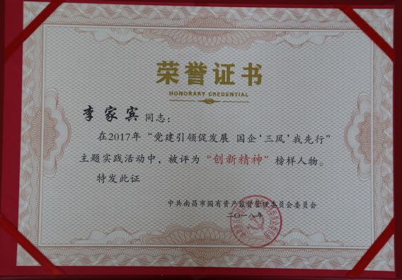 在2017年度國資委組織的“黨建引領(lǐng)促發(fā)展 國企“三風”我先行”主題實踐活動中,陳國明同志被評為“優(yōu)秀工作者”,李家兵同志被評為“創(chuàng)新精神”榜樣人物,徐棽同志被評為“工匠精神”榜樣人物。
