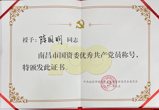 在隆重紀(jì)念中國(guó)共產(chǎn)黨成立100周年之際,南昌市國(guó)資委和南昌旅游集團(tuán)于近日對(duì)一批來(lái)自各條工作戰(zhàn)線上的優(yōu)秀黨員和優(yōu)秀黨務(wù)工作者及先進(jìn)基層黨組織進(jìn)行了表彰,獎(jiǎng)勵(lì)他(她)們?cè)诟髯缘墓ぷ鲘徫簧?/font>履職盡責(zé)創(chuàng)先進(jìn)、立足崗位爭(zhēng)優(yōu)秀,在推動(dòng)企業(yè)高質(zhì)量發(fā)展中充分發(fā)揮戰(zhàn)斗堡壘和先鋒模范作用。其中,公司陳國(guó)明同志榮獲市國(guó)資委“優(yōu)秀共產(chǎn)黨員”稱號(hào),公司黨委被評(píng)為南旅集團(tuán)“先進(jìn)基層黨組織”,黨員職工胡穎明、徐小蘭、王昕、王貞同志獲南旅集團(tuán)“優(yōu)秀共產(chǎn)黨員”稱號(hào)。