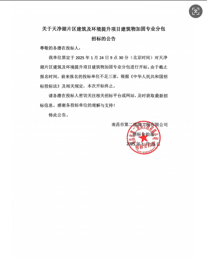 關(guān)于天凈湖片區(qū)建筑及環(huán)境提升項目建筑物加固專業(yè)分包招標的公告